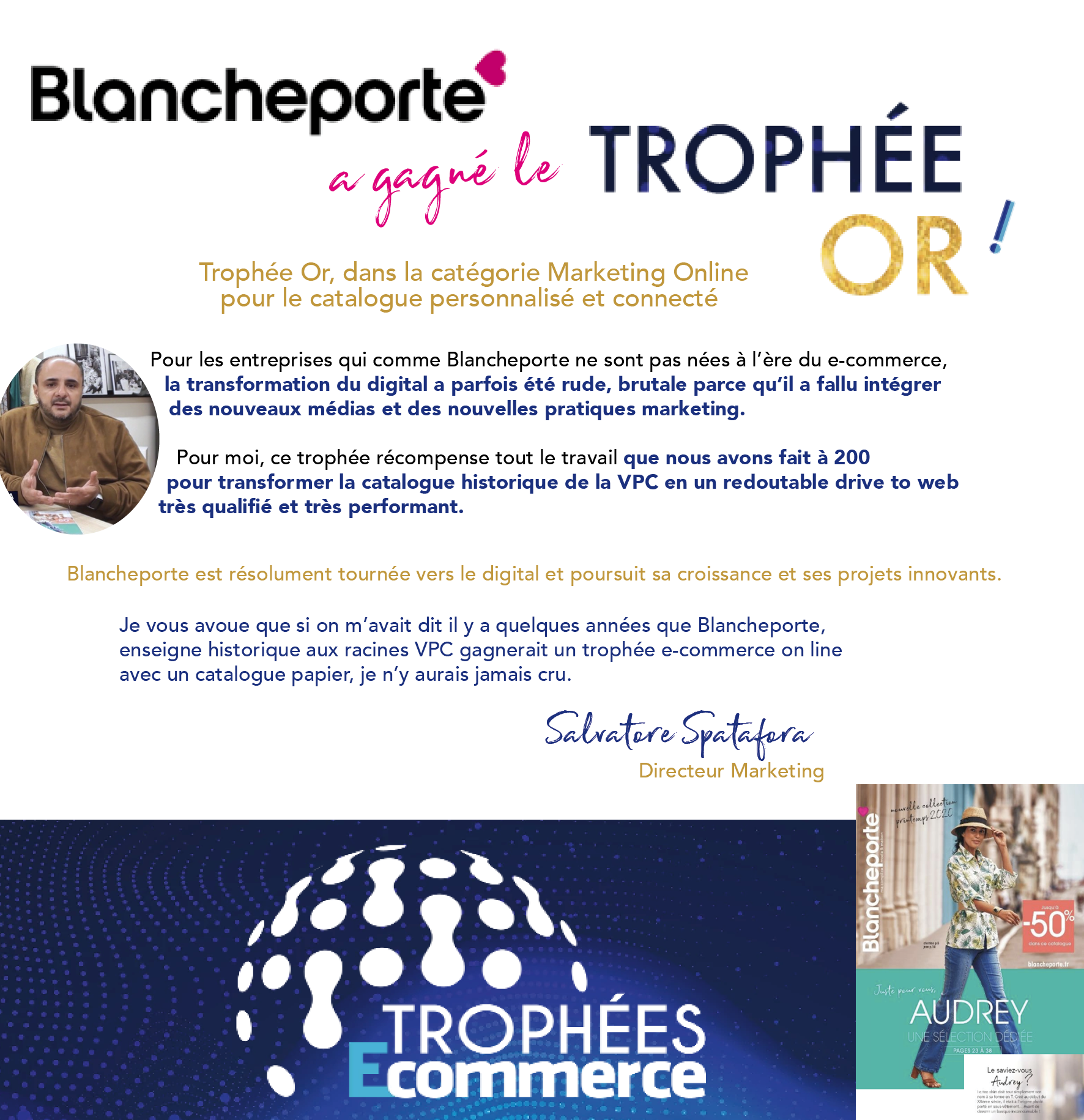 Je vous avoue que si on m’avait dit il y a quelques années que Blancheporte, enseigne historique aux racines VPC gagnerait un trophée e-commerce on line avec un catalogue papier, je n’y aurais jamais cru«